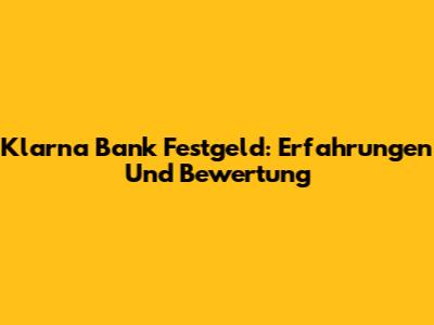 Klarna Bank Festgeld: Erfahrungen Und Bewertung