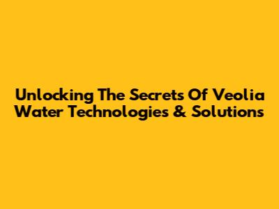 Unlocking The Secrets Of Veolia Water Technologies & Solutions