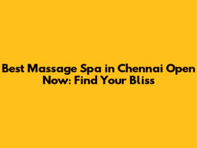Best Massage Spa In Chennai Open Now: Find Your Bliss