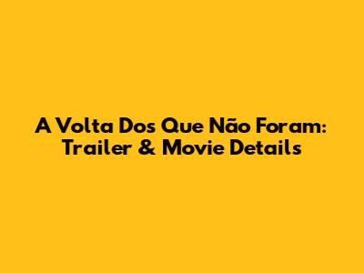 A Volta Dos Que Não Foram: Trailer & Movie Details