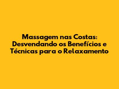 2. Quais são as diferentes técnicas de massagem nas costas? Existem diversas técnicas, como massagem relaxante, terapêutica, sueca, desportiva, com pedras quentes e deep tissue. Cada técnica possui suas próprias características e benefícios, sendo importante escolher aquela que melhor se adapta às suas necessidades.